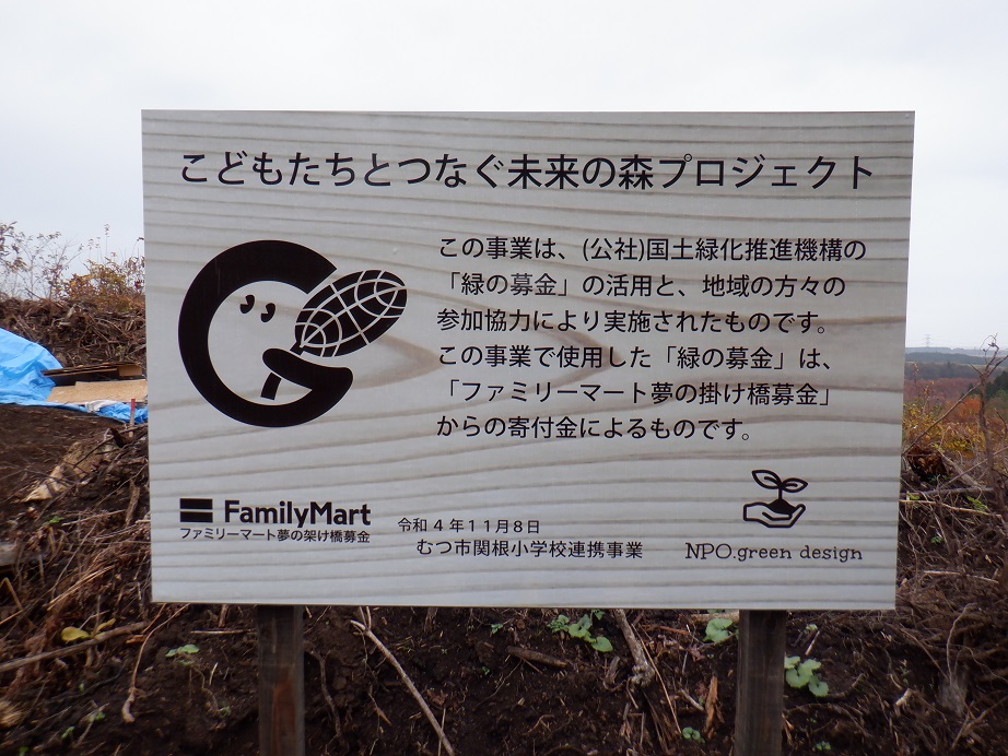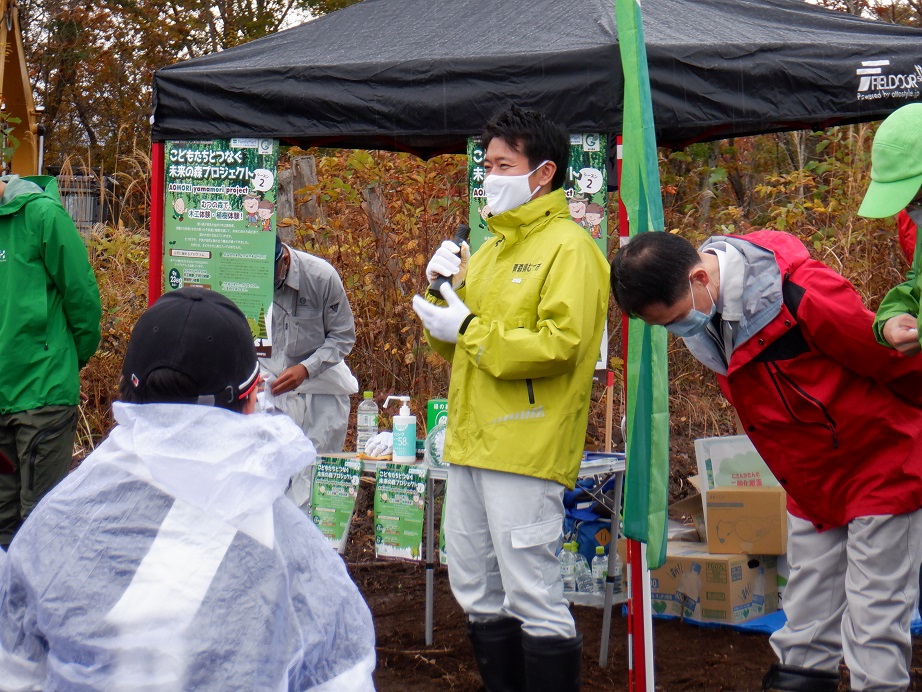 11月8日、NPO法人『green design』が主催する、『こどもたちとつなぐ未来の森プロジェクトシーズン2』が、むつ市の宮後市有林で開催されました。