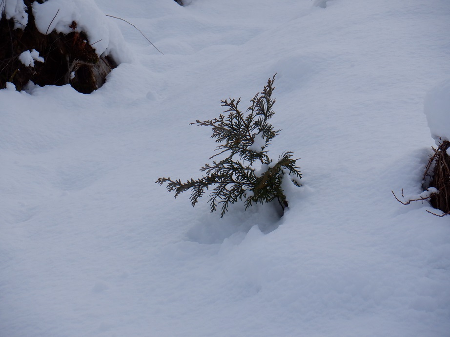 雪なんぞに負けないで、青森ヒバらしく来年も成長するのを楽しみにしています。